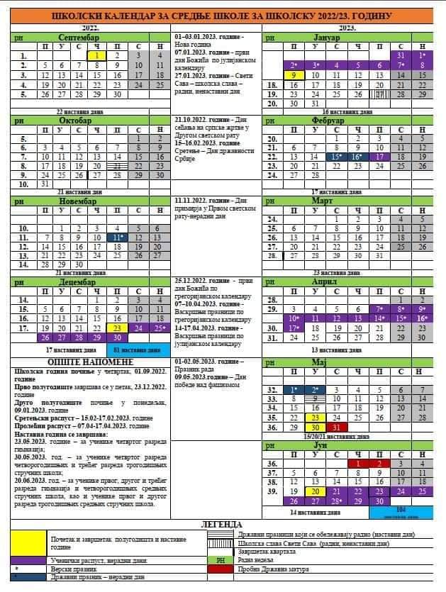 Кликом на линк отвара се ШКОЛСКИ КАЛЕНДАР ЗА СРЕДЊE ШКОЛE ЗА ШКОЛСКУ 2022/23. ГОДИНУ.